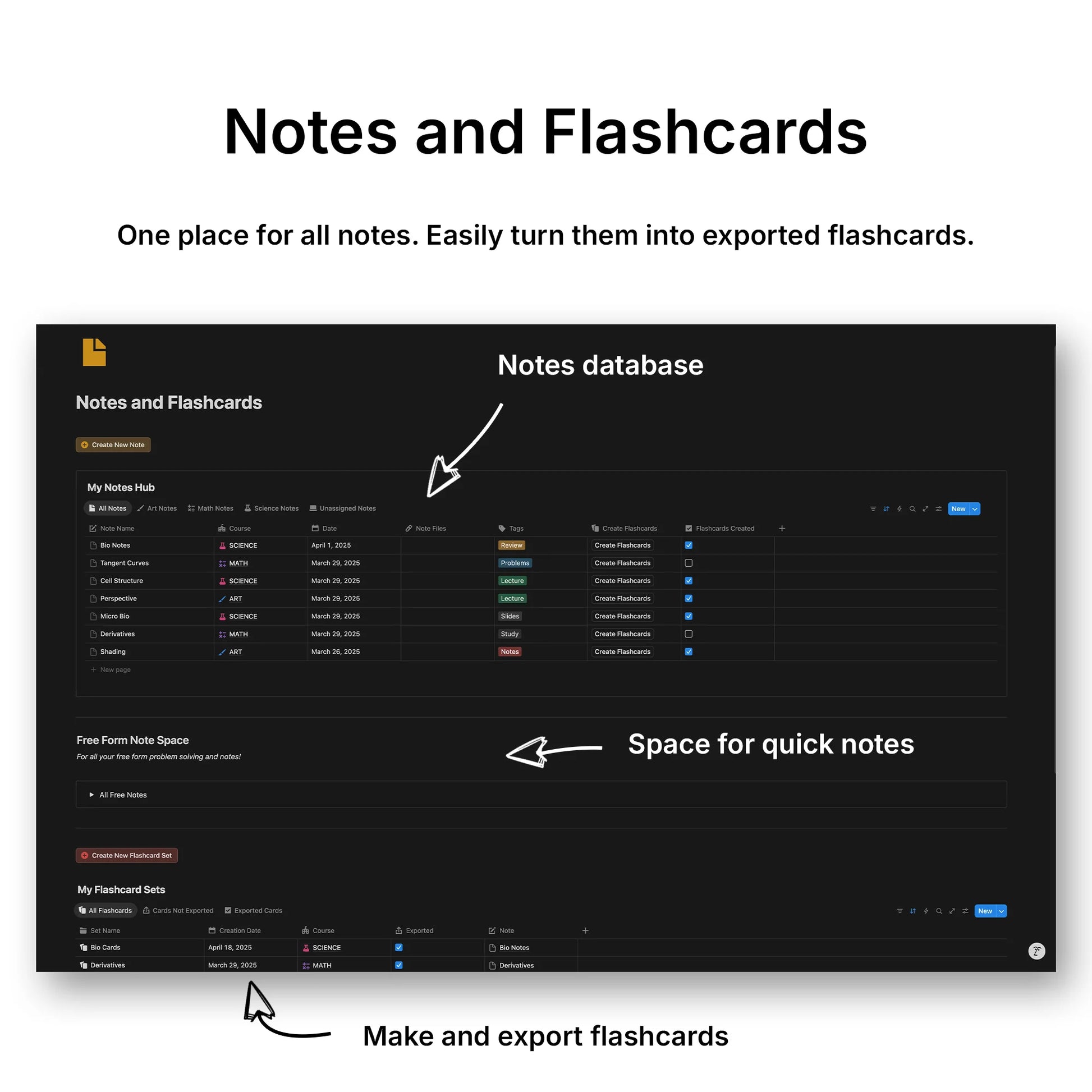 This system is one place where everything connects: your schedule, tasks, notes, flashcards, and grades. No more jumping between five apps (or forgetting where you wrote that one thing).